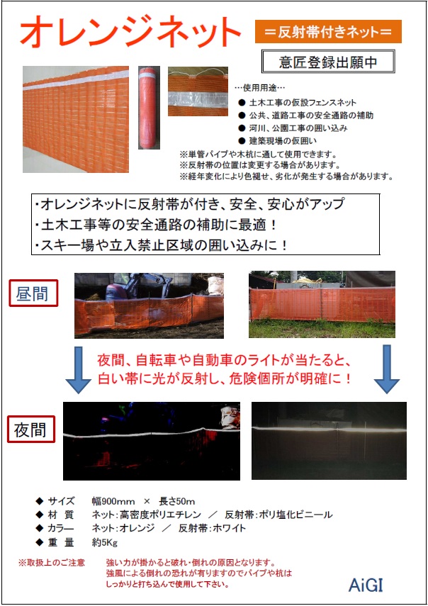 オレンジネットに反射帯が付き、より安全を確保できます。 夜間、ライトが当たると帯に反射し、危険箇所が明確になります。